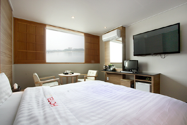 ヨジュJホテルは南漢江のほとりにある静かなホテルで、多くの客室が南漢江に面しのんびりとした景色を楽しめます。ヨジュ高速バスターミナルやヨジュ駅からもタクシーで5分程度と市内からのアクセスがよく、客室の広さも十分にあり、質の良い寝具でゆっくりとお休み頂けます。wi-fiも無料で利用できますので、旅行情報やメールのチェックにも便利。京江(キョンガン)線の開通で首都圏の板橋(パンキョ)駅からヨジュ駅まで48分とますます訪れやすくなったヨジュを旅行の際にぜひご利用ください。