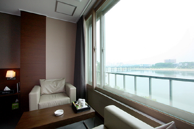 南漢江のほとりにある静かなホテル