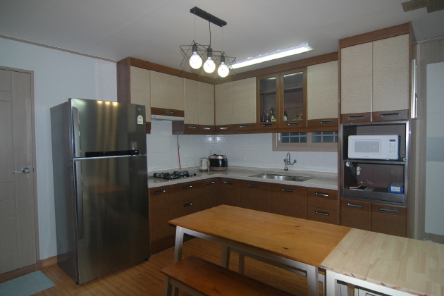 濟州道の南側・西歸浦市の爲美(ウィミ)港の近くに位置する爲美 (ウィミ)一戸建ての家は社員旅行や海外オフ会などのグループ旅行から家族旅行まで、他の宿泊客を気にすることなく自由に済州島リゾートライフを満喫できる一棟貸切タイプのゲストハウス。庭には大きな柿の木が茂り、アンズやりんご、梨、蜜柑など季節ごとの様々な果物を目当てに小さな鳥もやってきて鳥のさえずりで気持ち良く朝を迎えることができます。清潔に保たれた客室は5つ。調理が可能なキッチンが付いたリビングも揃い最大10名までリーズナブルにご利用頂けます。ゲストハウスの客室は5室。7名様までのグループではRoom1, Room2, Room3, Room4の4室とリビングを、10名様までのグループは全客室とリビングを自由に使用頂けます。