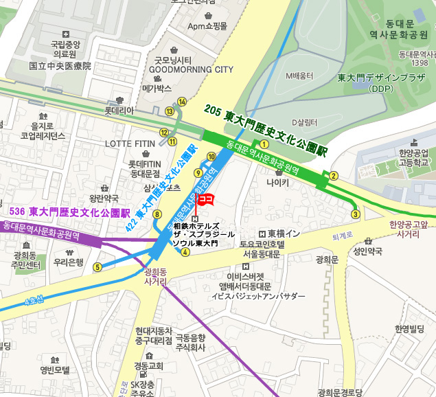 • タクシー : 20,000ウォン程、所要時間 : 約45分