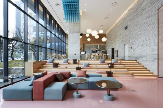 6712番バス(新村ロータリー行き)に乗車し、西橋(ソギョ)ホテル・慶南ウェディングホール(中央車路) で下車。徒歩約2分。