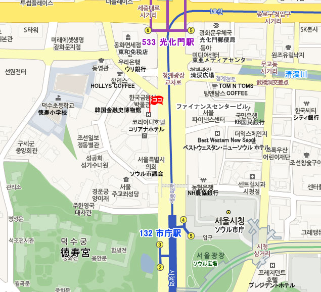 バス番号6701番 (市庁方面行き)バスに乗車し、コリアナホテル前で下車。