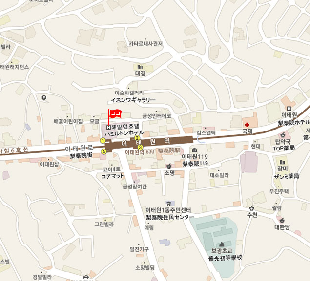 6030番(漢南洞行き)乗車後、ハミルトンホテル前下車。