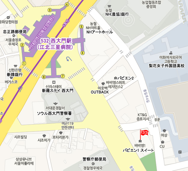 ♣ 仁川空港 ⇒ ホテル アクセス • 一般リムジンバス : バス乗場:《第1T》5B 《第2T》29 運行間隔:45分 所要時間:73分 バス番号6005番(仁寺洞行)バスに乗車し、新羅ステイ西大門で下車後徒歩約5分。 • 空港鉄道(A'REX) : 仁川国際空港(Incheon Int'l Airport)から空港鉄道に乗車し、孔徳(Gongdeok)駅にて地下鉄5号線に乗換えて西大門(Seodaemun)駅にて下車。6番出口から徒歩約2分。 • タクシー : 一般43,100ウォン、模範90,000ウォン程度 所要時間 : 約60分 ♣ 金浦空港 ⇒ ホテル アクセス • 地下鉄 : 金浦空港 (Gimpo Int’l Airport)から地下鉄5号線に乗車し、西大門(Seodaemun)駅で下車。6番出口から徒歩約2分。 • タクシー : 一般15,700ウォン程、模範45,000ウォン程、所要時間 : 約33分 ♣ その他 情報 • チェックイン17:00、チェックアウト12:00 • 定員オーバーでチェックインされた場合、現地にて追加費用が徴収されますのでご注意ください。 • NHKなど衛星放送 受信可。 • Wi-Fiなし、有線LAN接続(全客室あり、無料、内線1番で設置要申込) •日曜日は清掃およびタオル交換不可 • 現地の事情により予告なしに変更される場合もございます。あらかじめご了承ください。 • 予約の確認、変更依頼、取消はMy予約確認ページにて行えます。 • メール送受信状況の確認、お客様とハナビツアーとのメッセージのやりとりはMy予約確認ページ ⇒ メール送受信 にて行えます。 • 最終更新日 : 2019. 7.1