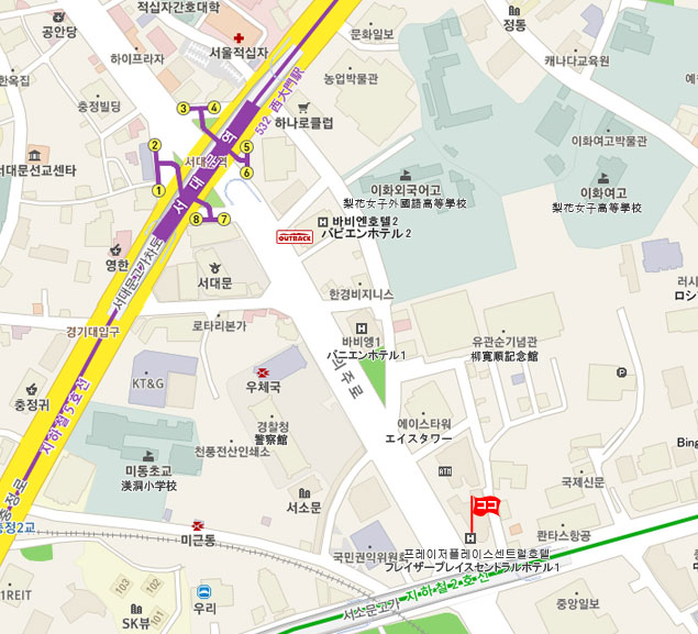 ♣ 仁川空港 ⇒ ホテル アクセス • 一般リムジンバス : バス乗場:《第1T》5B 《第2T》29 運行間隔:45分 所要時間:88分 バス番号6005番(仁寺洞行)バスに乗り、フレイザープレイス前下車後、横断歩道を渡り約3分。 • 空港鉄道(A'REX) : 仁川国際空港(Incheon Int'l Airport)から空港鉄道に乗車し、孔徳(Gongdeok)駅にて地下鉄5号線に乗換えて西大門(Seodaemun)にて下車。6番出口から徒歩約5分。 • タクシー : 一般42,800ウォン、模範90,000ウォン程度 所要時間 : 約63分 ♣ 金浦空港 ⇒ ホテル アクセス • 地下鉄 : 金浦空港 (Gimpo Int'l Airport)駅から地下鉄5号線に乗車し 、西大門(Seodaemun)駅で下車。 6番出口から徒歩約5分。 • タクシー : 一般15,400ウォン程、模範45,000ウォン程、所要時間 : 約32分 ♣ その他 情報 • チェックイン 15:00、 チェックアウト 11:00 • NHKなど衛星放送 受信可。 • Wi-Fi(全客室有、無料、パスワードはフロントにて要確認)、有線LAN接続(全客室有、無料) • 朝食有料 (利用の場合は、1階「First Floor」6:30~10:00) • 徒歩 2分以内にコンビニあります。 • 現地の事情により予告なしに変更される場合もございます。あらかじめご了承ください。 • 予約の確認、変更依頼、取消はMy予約確認ページにて行えます。 • メール送受信状況の確認、お客様とハナビツアーとのメッセージのやりとりはMy予約確認ページ ⇒ メール送受信 にて行えます。 • 最終更新日 : 2019. 7.1