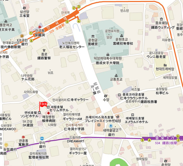 ♣ 仁川空港 ⇒ ホテル アクセス • 一般リムジンバス : バス乗場:5B、12A 運行間隔:15分 所要時間:70分 6002番(清涼里行き)バスに乗車し鍾路2街(チョンノイガ)にて下車。徒歩約10分。 • 空港鉄道(A'REX) : 仁川国際空港(Incheon Int'l Airport)から空港鉄道に乗車し、ソウル駅にて地下鉄1号線に乗換えて鐘閣(Jonggak)駅にて下車。 3番出口から徒歩7分。 • タクシー : 一般44,000ウォン、模範90,000ウォン程度 所要時間 : 約69分 ♣ 金浦空港 ⇒ ホテル アクセス • 空港鉄道(A'REX) : 金浦空港 (Gimpo Int’l Airport)から空港鉄道に乗車し、ソウル駅にて地下鉄1号線に乗換えて鐘閣(Jonggak)駅にて下車。 3番出口から徒歩7分。 • タクシー : 一般16,600ウォン程、模範45,000ウォン程、所要時間 : 約38分 ♣ その他 情報 • チェックイン 14:00、 チェックアウト 12:00 • NHKなど衛星放送 受信可。 • 朝食利用の場合は、1階「Theras」(7:30~9:30) • Wi-Fi(全客室有、無料)、有線LAN接続(全客室有、無料) • 徒歩3分以内にコンビニあります。 • 現地の事情により予告なしに変更される場合もございます。あらかじめご了承ください。 • 予約の確認、変更依頼、取消はMy予約確認ページにて行えます。 • メール送受信状況の確認、お客様とハナビツアーとのメッセージのやりとりはMy予約確認ページ ⇒ メール送受信 にて行えます。 • 最終更新日 : 2019. 7.1