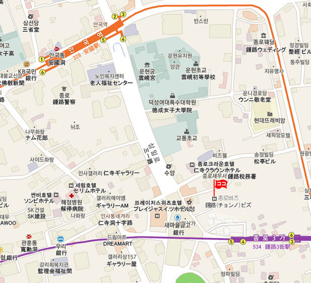 ♣ 仁川空港 ⇒ ホテル アクセス • 一般リムジンバス : バス乗場:《第1T》5B 《第2T》30 運行間隔20分 所要時間約70分 バス番号6002番(新村·鍾路·清涼里行き)バスに乗り、鍾路3街(チョンノサンガ)にて下車。徒歩約5分。 • タクシー : 一般60,000ウォン、模範90,000ウォン程度 所要時間 : 約50分 ♣ 金浦空港 ⇒ ホテル アクセス • 地下鉄 : 金浦空港 (Gimpo Intl Airport)から地下鉄5号線に乗車し、鍾路3街(Jongro (sam)-ga)駅で下車。5番出口から徒歩3分。 ※4番出口にエスカレーターあり(4番出口を出て反対方向に進むと5番出口) • タクシー : 一般25,000ウォン程、模範45,000ウォン程、所要時間 : 約40分 ♣ その他 情報 • チェックイン 14:00、 チェックアウト 11:00 • 朝食無料サービス有 • NHKなど衛星放送 受信可。 • 徒歩 2分以内にコンビニあります。 • 現地の事情により予告なしに変更される場合もございます。あらかじめご了承ください。 • 予約の確認、変更依頼、取消はMy予約確認ページにて行えます。 • メール送受信状況の確認、お客様とハナビツアーとのメッセージのやりとりはMy予約確認ページ ⇒ メール送受信 にて行えます。 • 最終更新日 : 2017. 2. 13