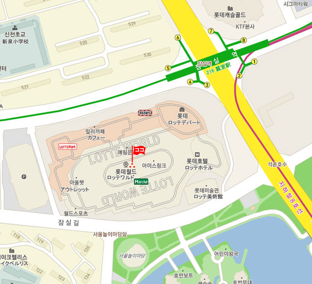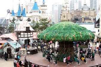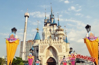 石村湖(ソッチョンホス)に浮かんだ小島に造られた野外テーマパークで絶叫系スライダーからスワンボートまで16種類のアトラクションが揃っています。マジックアイランドにもレストランが4箇所、ショップが2箇所、フードワゴンも各所に揃っています。 アドベンチャー(室内)とは橋で繋がり、ロッテマークのシンボルのお城の門をくぐって入ります。