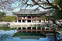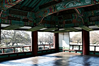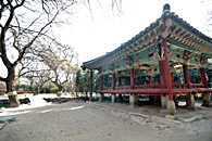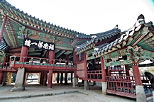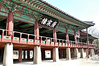 「春香楼」ともいわれるこの広寒楼は朝鮮時代の世宗大王の時代(1418年~1450年)に建てられましたが、その後文禄・慶長の役の際に焼失。その後1638年に再建されました。その後、世祖の時代に元の楼閣を再建し、二軒の建物を一つに結ぶ独特作りとなり、前方には蓮の池が配置された美しい楼閣です。 「春香伝」はストーリーはフィクションですが登場人物は実在の人物として記録に残っています。物語のハッピーエンドとは違い二人の恋は春香の死によって叶えられることはなかったと伝えられています。