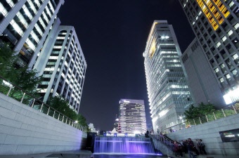 清渓川(チョンゲチョン)はソウルの中心部を流れる長さ約5.8キロの河川。李氏朝鮮時代初期から下水道、貧民街、埋め立てと不幸な歴史を辿っていましたが、清渓川の上に架けられていた高架道路の老築化と撤去に伴い2年の歳月をかけて復元工事が行われ、現在ではソウル市民の憩いの場として生まれ変わりました。 川には人工的に浄水された清らかな水が流れ、昼には自然と共存した憩いの場として、夜は美しくライトアップされロマンティックな雰囲気を創り出しています。
