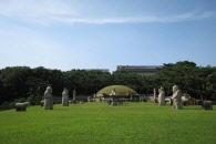 ソウル郊外の九里(クリ)市にある朝鮮王朝の王陵群。朝鮮王朝の始祖である太祖の陵(健元陵)、第21代英祖の陵(元陵)など500年に亘り、9陵17位の王と后妃の陵墓が建造されました。5世紀に渡る王家の陵として規模も大きく、朝鮮王陵を代表する群陵とされ、丁寧に手入れされた緑に囲まれた景観の良さも知られています。 朝鮮王朝の始祖、太祖の陵。王陵の盛り土には青々とした芝生が覆っているのが一般的ですが、健元陵には芝生の代わりにススキが一見すると荒れた状態で生い茂っています。このススキは息子達が殺戮を伴う後継争いを繰り広げるなど決して穏やかとはいえない晩年を送った太祖が死を目前として故郷の土と草の下で眠ることを願ったため故郷である咸興から移植されたと伝えられています。