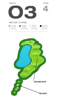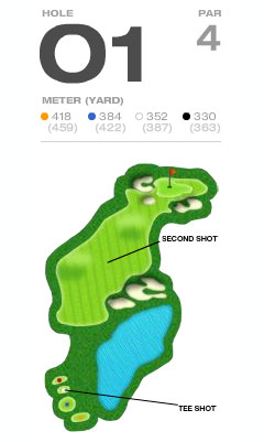 コースはスカイコース、オーシャンコース、ヒルコース、フォレストコースの4コース36ホール。設計は現在まで世界中で200を越えるコースの設計に携わってきたロバート・トレント・ジョンス・ジュニア。自然の地形や済州島の火山岩などを活かし、自然とゴルファーが一体なるゴルフ場をテーマに環境に配慮しながらも最新の装備をそなえた最上のコースに仕上がりました。コース全体をGPSシステムで把握するとともに、カートにもGPSを搭載しホール状況、距離測定、スコア管理が可能となりました。また付帯施設もクラブハウス、レストラン、イベントホール、ゴルフ練習場、サウナ&スパ、休憩所、バーと充実しています。