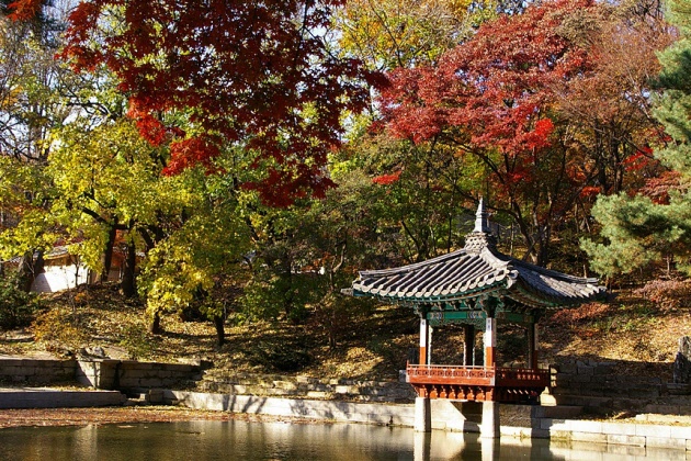 昌徳宮北方に広がる秘苑(ピウォン)は、もともと後苑(フウォン)といい、朝鮮第3代王、太宗5年(1405年)昌徳宮の創建時に宮殿の庭園として造られ、王や王妃が余暇を楽しんでいた場所。1592年、文禄・慶長の役で大半の庭亭が焼失しましたが、1623年に改修増築されたとされます。 韓国でも有数の名園として知られる秘苑(ビウォン)は、朝鮮王朝時代の造庭芸術としてその美しさが有名。ドラマ「チャングムの誓い」のロケも行われ、チャングムと王が散歩をするシーンの撮影が行われました。