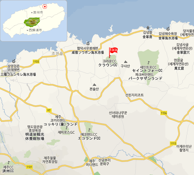 クラウンカントリークラブは済州市から14キロ程東側に位置し、済州国際空港からは車で25分の距離にあります。浅く澄んだ水で夏には沢山の海水浴客が訪れる咸徳(ハムドッ)海水浴場の近くにあり夏は涼しく、冬は暖かい地理的条件にも恵まれ済州島のゴルフ場の中でも開場率が高く、1年365日プレーが楽しめます。クラウンカントリークラブは自然樹林や椰子の木が茂り、済州島らしい異国的なリゾートの雰囲気に包まれ、韓国内のゴルフ場の中でも特に美しいコースとして知られています。グリーンはベントラス、フェアウェーはライグラスとケンタッキーグラスと西洋芝で造成されています。