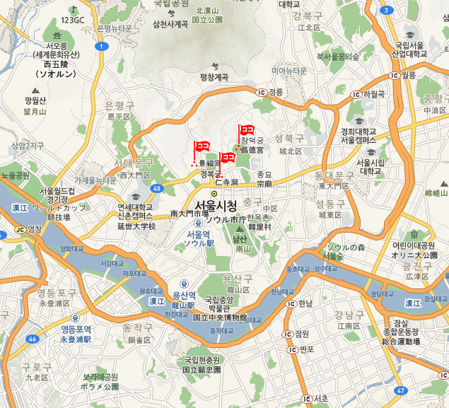 ※昌徳宮(チャンドックン)のうち秘苑は時間観覧制が施行されるため、コースには含まれません。