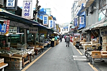 鮮魚市場として観光客にも人気の高いチャガルチ市場。釜山の台所として有名なこの市場の東側の端からは、魚介類の乾魚物を扱う乾物市場へと変化していきます。釜山地下鉄南浦洞(ナンポドン)駅近くにあるこの市場は、近代的な市場へと変化している鮮魚市場とは対照的に、昔ながらの建物が広がる懐かしい一帯で、日本統治時代の建物も多く残っており、たびたび映画やドラマの撮影にも使われています。この市場には煮干や岩海苔、スルメ、昆布など乾魚物を専門に扱う店舗が約200軒ほど並んでいて、店先からは乾物独特の香りが漂っています。チャガルチ生鮮魚市場の2階部分にも乾物を扱うコーナーがありますが、せっかくですから徒歩で簡単に行ける距離にあるこの市場を覗いて、昔ながらの市場の雰囲気を楽しんでみてはいかかでしょうか。