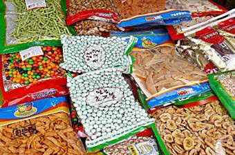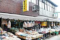 チャガルチ市場に比べれば、まだまだ穴場的な乾物市場ですが、岩海苔など市価よりも安く手に入るので、口コミ等で徐々に人気が高まり、日本へのお土産を一度に大量購入していく日本人観光客が増えているそうです。海苔等はかさばってしまいますが、有料で日本まで郵送をお願いすることもできます。 岩海苔の他にもカタクチイワシ、スルメ、昆布、イリコ、塩辛、明太子などお土産になるものが揃っており、乾物の香りが昔ながらの町並みと重なって、訪れて楽しい市場です。