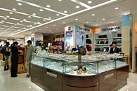 | 1階はロビー1,2館と分かれており、ロビー1館では高麗人参製品、韓国海苔、伝統工芸品、キムチや、韓国チープコスメ、ジーンズブランドや登山ウェアなど購入することができます。 |
