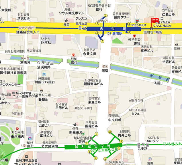 ソウル特別市 鍾路区(チョンログ)鍾路1街(ジョンロイルガ)鐘閣駅(ジョンガクヨク)一帶