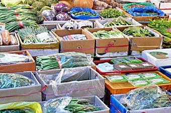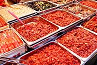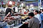 食べ物の屋台がずらりと並んでいます。