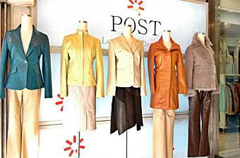 革製品専門店のPOST。店内には既製の商品もありますが、もちろんオーダーメイドもお願いできます。お値段はデザインや革の質によって変わりますが、一般的な羊革の場合ジャケットでしたら40万ウォン台から、コートですと50万ウォン台からとなります。 そしてオーダーを頼むときはデザインや色など希望のスタイルを明確にするために雑誌の切抜きや、あるいはお店にある商品を示すなど、お店の人にわかりやすく示してあげるといいですね。