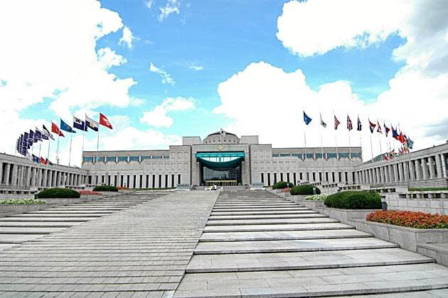 龍山(ヨンサン)駅と梨泰院(イテウォン)の間の三角地(サンガクチ)にある戦争記念館は、韓国が今まで関わった戦争に関する博物館です。全体の3分の2が朝鮮戦争(1950-53)をテーマにした展示となっていて、建物の入口の回廊には、朝鮮戦争で戦死したすべての軍人の名前が刻まれています。全部で13,000点以上の実物やレプリカが展示されています。記念館の屋外には、戦闘機や戦車やミサイルなどが展示されています。これは実際に戦争で使われていたものや、対戦相手だった中国軍から奪取したものなどで、館内の展示品より多いく展示されています。また、記念館の敷地内には「兄弟の像」があり、朝鮮戦争後の分断で兄弟が離れ離れになったのち、兄は韓国軍将校、弟は北朝鮮兵士として再会するという悲劇の場面を表現したものです。