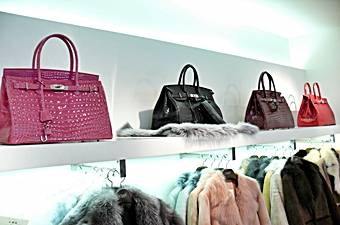 1階は女性服とアクセサリー、2階は男性服、オーダーメイド、女性用スカート、パンツなどがあり、特に目を引くのは2階トレンド・コーナー。流行を意識したサンプル品を展示していて、1点ものが手に入る場合がありますのでチェックしてください。3階がデザインルームで、4名の専属デザイナーがオリジナル製品を開発しています。