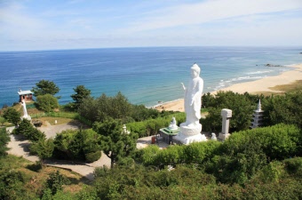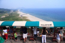 江原道.高城郡(コソングン)にある統一展望台は、韓国内にある統一展望台の中で最も北に位置し、展望台からは北朝鮮側の江原道にある金剛山(クムガンサン)という名山も望めます。展望台は北朝鮮を眺めることができるものとしては最も早い1983年に建造されました。展望台からは金剛山をはじめ、九仙峰(クソンボン)、鑑湖(カモ)、松島(ソンド)などを望み、また青く澄んだ東海(日本海)の雄大な景色も楽しめます。展望台には、ただ景色を楽しみに訪れる観光客だけでなく、朝鮮戦争によって北朝鮮の故郷に帰ることができなくなった人々、北側の家族と離れ離れになってしまった人々などが遠くに見える北朝鮮を見つめながら涙を流す、南北分断の悲しい現実を感じる場でもあります。