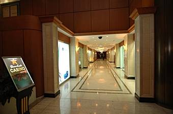 同ホテルに宿泊されている方は一階の通路を通って、また外部から訪れる方はホテル正面玄関の右側にある入り口からカジノへ入ります。外国人専用ということでパスポートのチェックなど行われますのでパスポートをお忘れなく。 800坪以上という広いカジノ内はラスベガスの華やかさをイメージしたという開放的でゴージャスなインテリア。初めての方もリラックスしてゲームを楽しめそうです。