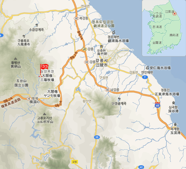 江原道(カンウォンド)平昌郡(ピョンチャングン)大関嶺面(デグァンリョンミョン)横渓2里 山 1-107
