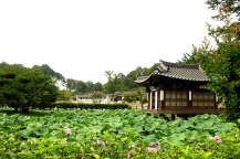 江原道の江陵(カンルン)にある船橋荘(ソンギョジャン)は、朝鮮時代後期の様式を残すの邸宅で、ハングルを制定した朝鮮第4代国王.世宗(セジョン)の兄である孝寧大君(ヒョニョンデグン)の11代目の子孫であった李乃蕃(イ.ネボン)が18世紀の初めにこの地に邸宅を築き、当時この一帯の地名をとって「船橋荘」と名づけました。99間を持つ代表的な両班の邸宅ということで、有形文化財にも登録されている船橋荘は、李乃蕃の子孫が代々暮らし、現在でも10代目にあたる子孫の方が建物を管理しながら暮らしています。邸宅前には人工的に造られた池や活来亭が建ち、夏ともなれば池に咲いた多くの蓮の花の上に浮かんでいるようにも見えます。