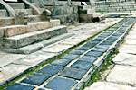 宗廟の中は、ゆったりとした敷地が取られ、門と塀に囲まれた内側に木々の茂る森があり、そこには石畳の道が走っています。この道は3列で構成され、神が通る道とされる中央の道が少し高くなっています。内部の建物の中心は、国宝でもある「正殿(ヂョンヂョン)」とそれを小振りにしたような「永寧殿(ヨンニョンヂョン)」です。正殿は歴代王の中でも特に優れた功績を残したとされる19人の王とそれぞれの王妃の位牌が安置されています。王の位牌が新たに安置される度に横長に増築を繰り返したため、木造建築物としては世界最長の101メートルを誇ります。