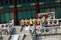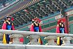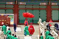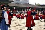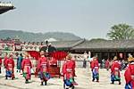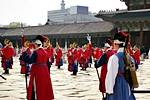 まず、徳寿宮(トクスグン)の門の前では、守門将交代儀式が行われます。これは王宮の前を警備していた武将と兵士たちが決まった時間に交代する様子を再現したもの、韓国式の軍楽隊を先頭に行進する様子も楽しく、外国人観光客に大変人気のあるイベントです。