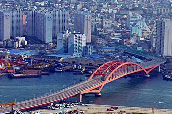 龍頭山公園のうえにある釜山タワーは高さ120メートル。周りにさえぎるものがありませんので、釜山市を一望できます。釜山は日本の神戸のように、平地が狭く、直ぐ山になっています。そんな地理的な特徴も、タワーの上から眺めれば、すぐに分かりますよ。そのため、海のほうと開発が進んでいますので、その様子も手に取るようにわかります。また、タワーの下の建物にはお土産コーナーや美術館などがありますので、こちらも立ち寄ってみたら面白いですよ。タワーを降りたら、ちょっと歩いて釜山一の繁華街、南浦洞をぶらつくのもおもしろいです。釜山のエネルギッシュな姿を感じられます。