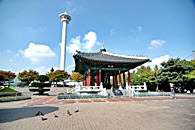 釜山観光の中心地、釜山の代表とも言える龍頭山公園はいつも数多くの観光客で賑わっています。この公園内には釜山タワー、豊臣秀吉から朝鮮を守った李舜臣(イスンシン)将軍の銅像や独立運動家の白山安熙の銅像など見どころもいっぱいです。 また美術展示館もあり、館内には美術品のほか釜山タワーの詳しい解説もあります。公園内には楼閣もあり釜山市民の憩いの場として昔から愛されています。