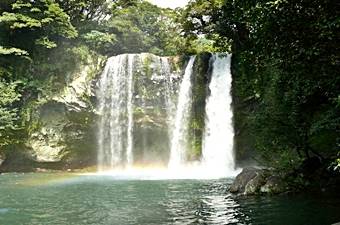 滝自体が天然記念物第27号にも指定されており、ここに住む天然記念物第258号の大ウナギも有名です。また毎年5月には七仙女祭りも開かれています。天地淵渓谷から滝までの約1キロの散策路は暖帯林に囲まれているので、南国の雰囲気を味わうことが出来ます。韓国本土には大きな滝は余りありませんが、済州島には、この天地淵瀑布のほかに、滝の水が直接海に落ちる正房瀑布、中文リゾートにある天帝淵瀑布が有名です。「天地淵」とは天と地が出会う池という意味を持ち天気の良い日には滝壷に虹が光り、周りの豊かな緑と重なって優しい印象を与えています。