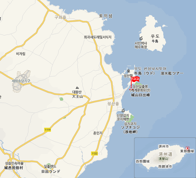 住所 済州道(チェジュド)西帰浦市(ソギッポシ)城山邑(ソンサンウプ)城山里(ソンサンリ) 日出峰