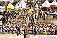 お祭りは3日間に渡って開催されますが、ハイライトはなんと言っても、野原に大きな篝火が焚かれ、あたり一面<火の海>になるところでしょう。最近は、この光景を見ようと韓国本土だけでなく、日本や中国などの外国人観光客も訪れるようになりました。もともと、済州島の民間の年中行事であったものを、地域のフェスティバルとして拡大、実施しています。そのため、この「火入れ」の行事だけでなく、民謡大会、農楽大会、伝統結婚式の再現、凧揚げ、済州馬のレース、豚のレース、ダンス大会などさまざまなイベントもあわせて行われます。また、済州島の郷土料理や特産品を楽しめる屋台も並び大いに賑わいます。